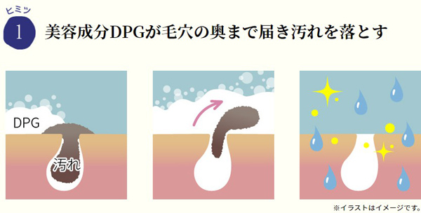 汚れ落としに美容成分DPG(ジプロピレングリコール)を使用